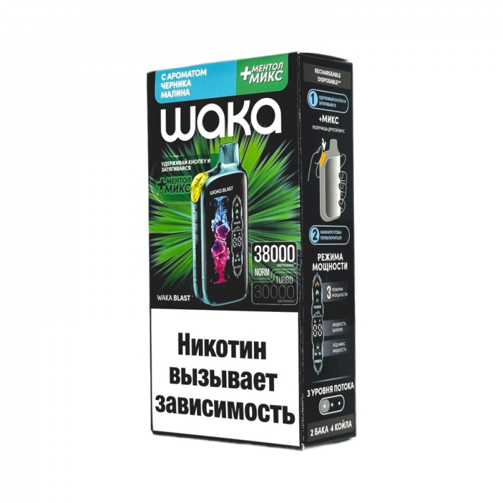WAKA BLAST 38000 Hard - Черника малина + ментол микс - купить в Бутурлиновке